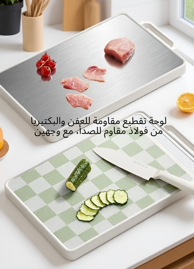 لوحة تقطيع مقاومة للعفن والبكتيريا من فولاذ مقاوم للصدأ، مع وجهين